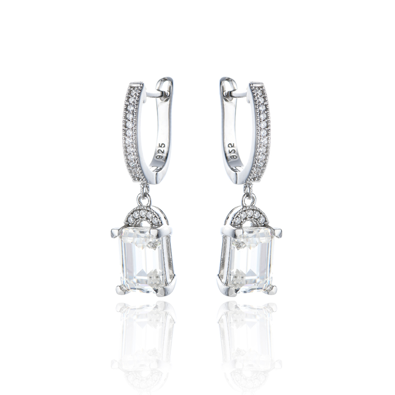 925 Octagon And Round White Cubic Zircon Rhodium Silver Earring