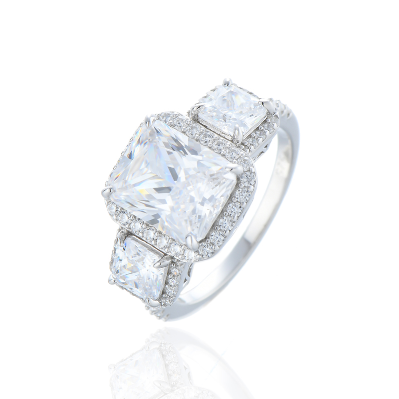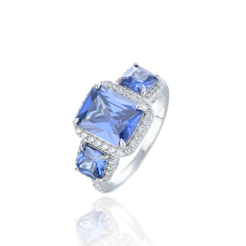 925 Octagon Tanzanite And Round White Cubic Zircon Rhodium Silver Ring