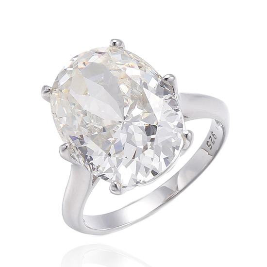 925 Oval Shape Diamond G Cubic Zircon Rhodium Plating Silver Ring