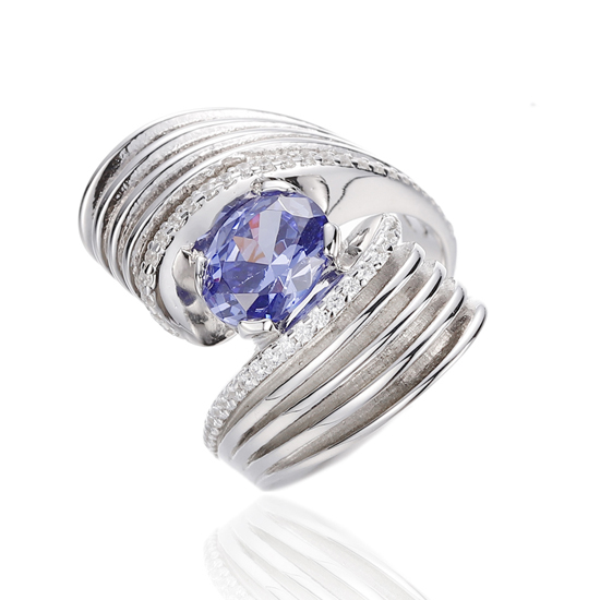 925 Oval Tanzanite And Round White Cubic Zircon Rhodium Silver Ring