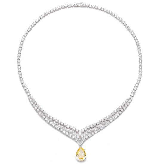 925 Pear Shape Diamond Yellow And White Cubic Zircon Rhodium Silver Necklace