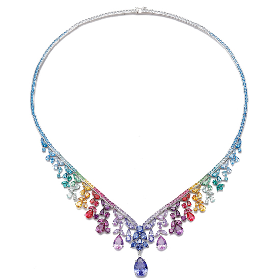 925 Pear Shape Rainbow Cubic Zircon Rhodium Silver Necklace
