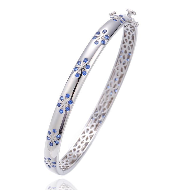 925 Round Blue Nano Rhodium Plating Silver Bangle