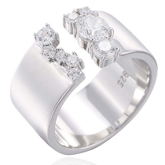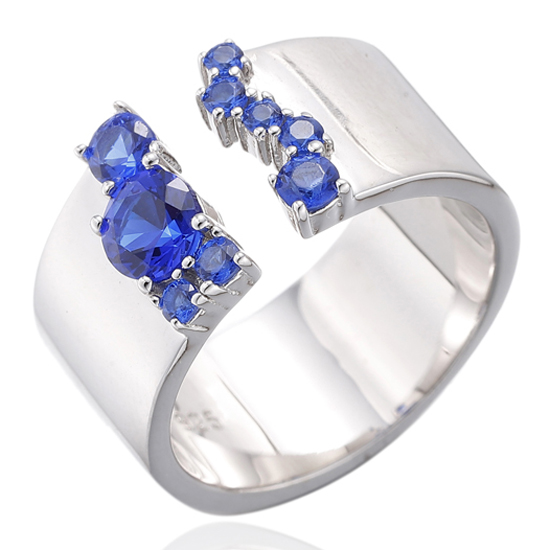 925 Round Blue Nano Rhodium Silver Open Ring