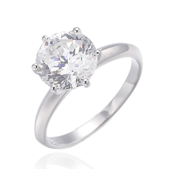 925 Round Diamond G Cubic Zircon Rhodium Silver Ring