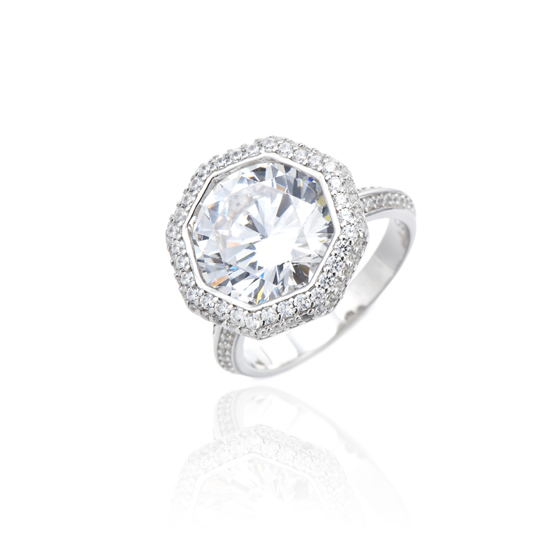 925 Round Diamond Pink And White Cubic Zircon Rhodium Silver Ring