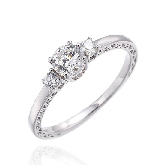 925 Round Shape Diamond G And White Cubic Zircon Rhodium Silver Ring