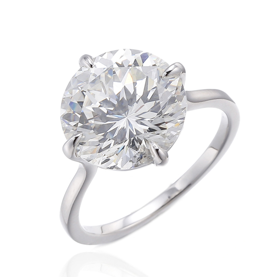 925 Round Shape Diamond G Cubic Zircon Rhodium Silver Ring