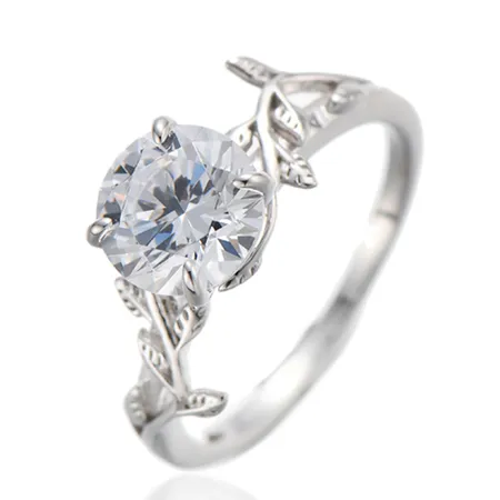 925 Round Shape White Cubic Zircon Rhodium Silver Ring