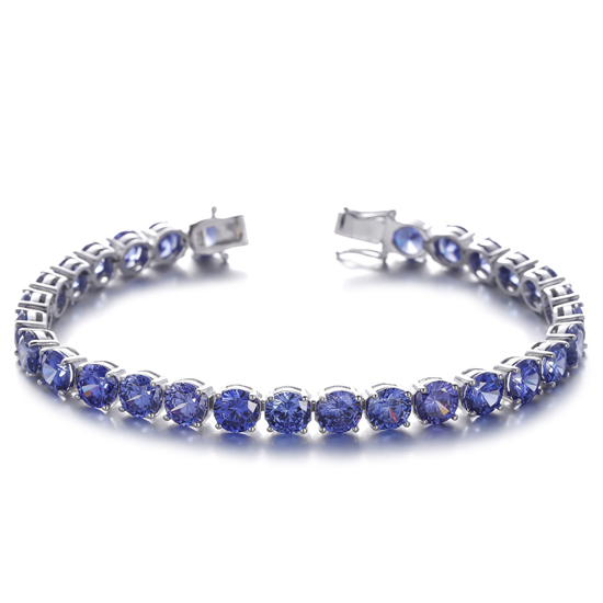 925 Round Tanzanite Cubic Zircon Rhodium Silver Bracelet