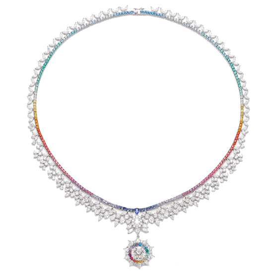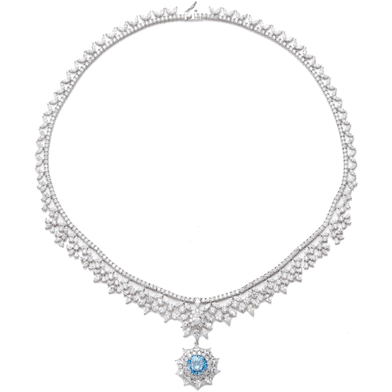 925 Round Diamond Blue And White Cubic Zircon Rhodium Silver Necklace