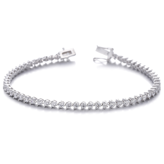 925 Round White Cubic Zircon Rhodium Silver Bracelet