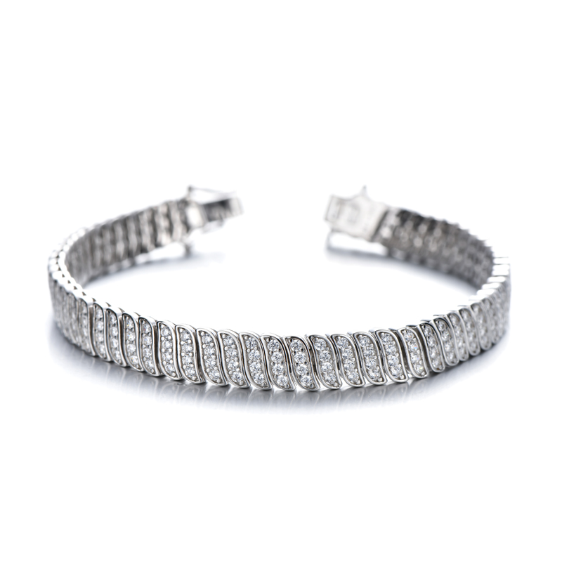 925 Round White Cubic Zircon Rhodium Silver Bracelet