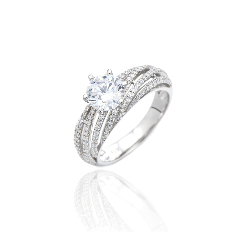 925 Round White Cubic Zircon Rhodium Silver Ring