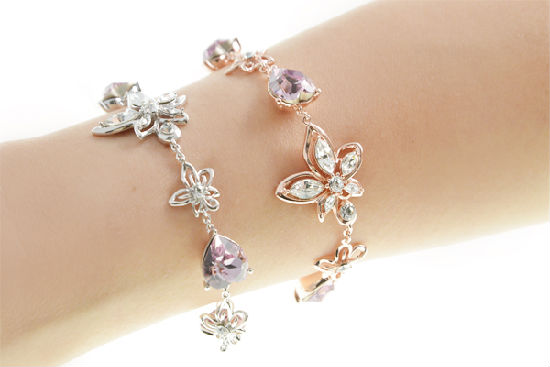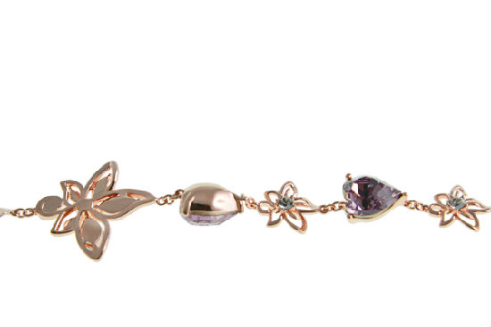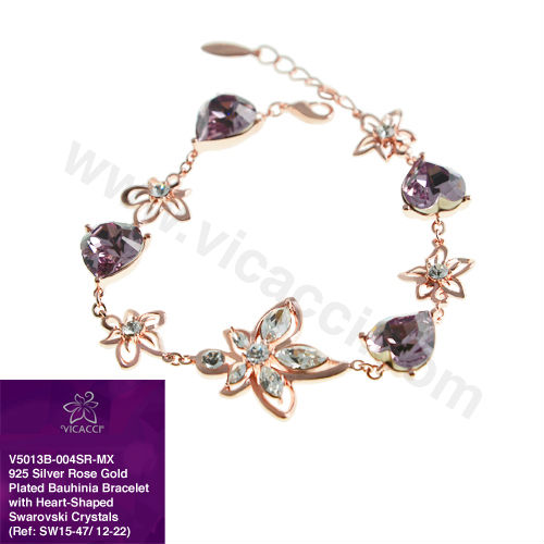 925 Silver 18KRose Gold Plated Vicacci Bauhinia Flower Bracelet with Heart-Shaped Swarovski Crystals