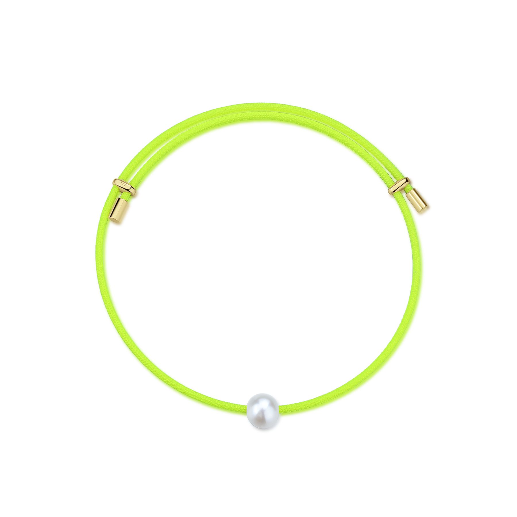 STERLING SILVER ADJUSTABLE COLOR THREAD BRACELET WITH 6-6.5MM ROUND FRESHWATER PEARL, YELLOW GOLD PLATED