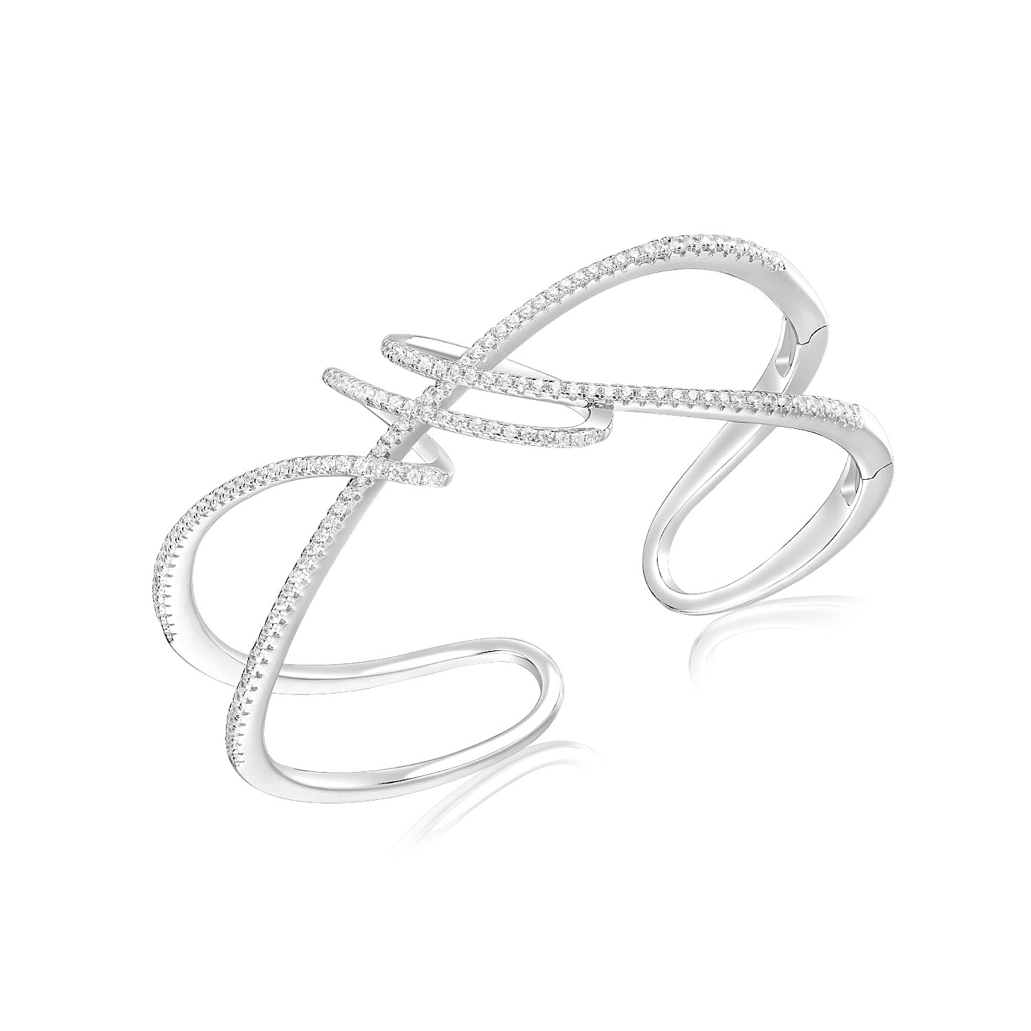 925 silver bangle in rhodium plating set with clear CZ