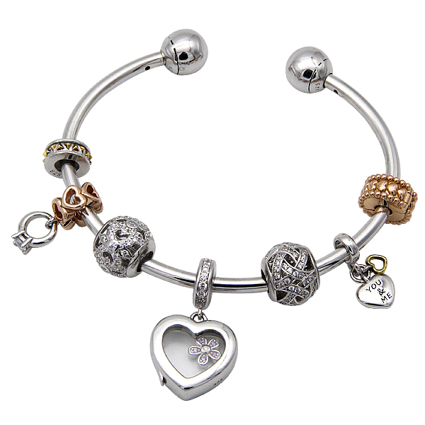925 silver bead bangle set in rhodium, gold & rose gold plating set with clear CZ