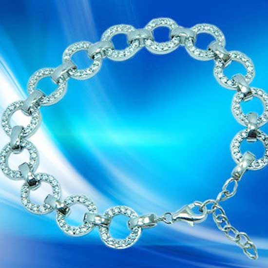 This is a stunning bracelet that is made of 925 sterling silver and shimmers with a highly glossy finish. The allover dazzling stones add a touch of style to the whole piece. This glamorous bracelet is secured with a lobster clasp.