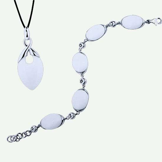 This is a bracelet and pendant set that is finely crafted of 925 silver. The jewelry pieces are adorned with white oval stones for a stunning look. The simple yet elegant jewelry pieces are ideal for completing your wardrobe.
