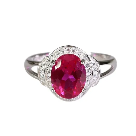 925 Silver CZ & Created Ruby Ring