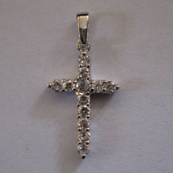 This 925 silver cross pendant features a glamorous design of clear sparkling stones. It exhibits elegant, sophisticated charm. This graceful pendant complements your everyday outfit beautifully.
