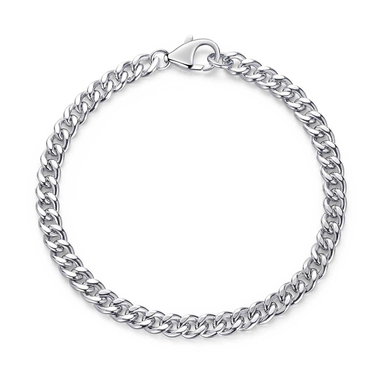 Sterling Silver Bracelet, Rhodium Plated, 7.5"