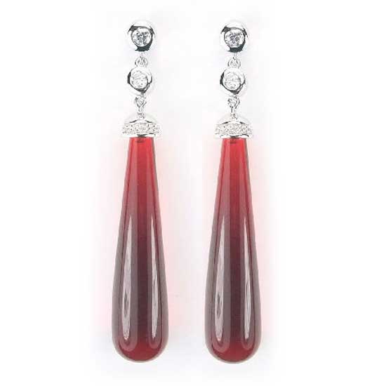 This is a pair of 925 silver earrings with an elegant and chic design. Each piece features a water drop shaped embellishment in gradual red. The sparkling white stone elements add an exquisite touch to the earring.