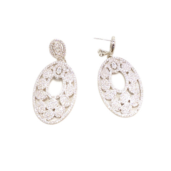 Displayed is a pair of dainty earrings made of 925 silver. Each earring comes in an oval shape with sophisticated cutouts. This pair of alluring earrings brings a subtle touch to your appearance immediately.