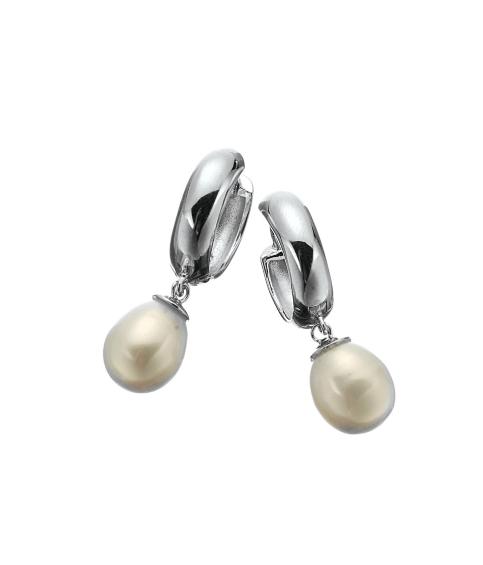 • 925 silver; stone: fresh water pearls; plating: rhodium plating; huggie earring with fresh water pearls.