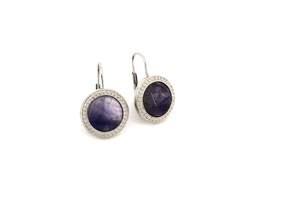 • 925 silver earring; stone: natural stone; plating rhodium plating French hook earring with round shape amethyst.