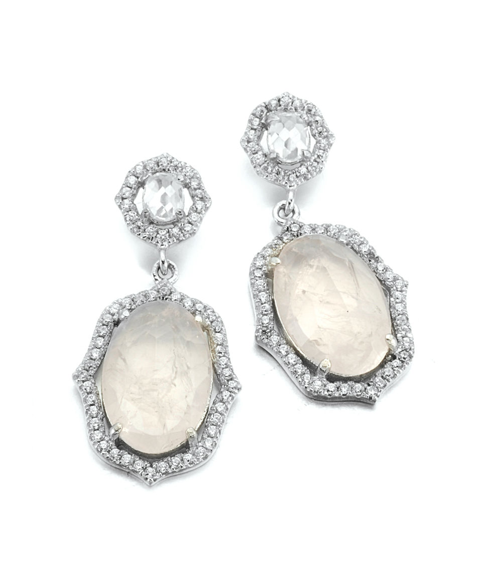 • 925 silver; stone: pink quartz and cubic zirconia; plating: rhodium plating; 925 silver earring set with pink quartz and cubic zirocnia around. It shows elegent and luxury.