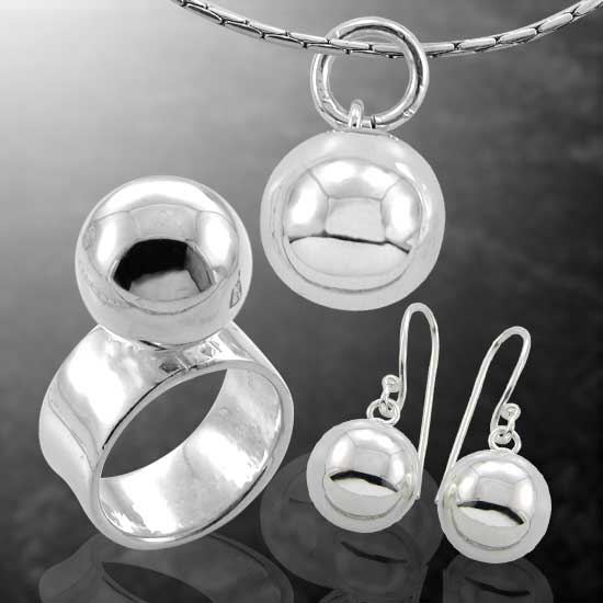 Showcased is a beautiful jewelry set coming with a pendant, a ring and earrings. The design features puffed motifs set in highly-polished silver settings. Get yourself this silver jewelry set and shine in all occasions.