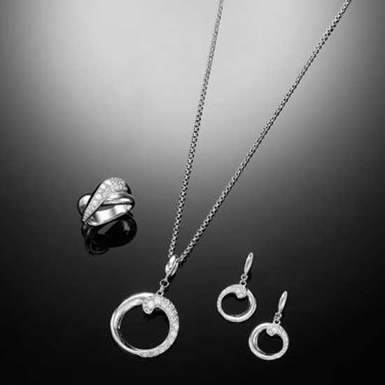 This 925 silver jewelry set consists of a ring, a necklace and a pair of earrings. Each piece is lavishly adorned with sparkling cubic zirconia stones for extra glamor. This elegant and gorgeous jewelry set is an ideal gift for your beloved one.