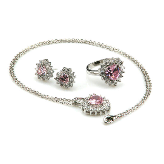 This is a fashionable 925 silver jewelry set with a necklace, a finger ring and a pair of earrings. It is finely crafted with colored stones for an elegant touch. This charming jewelry set is great for complementing your chic look.
