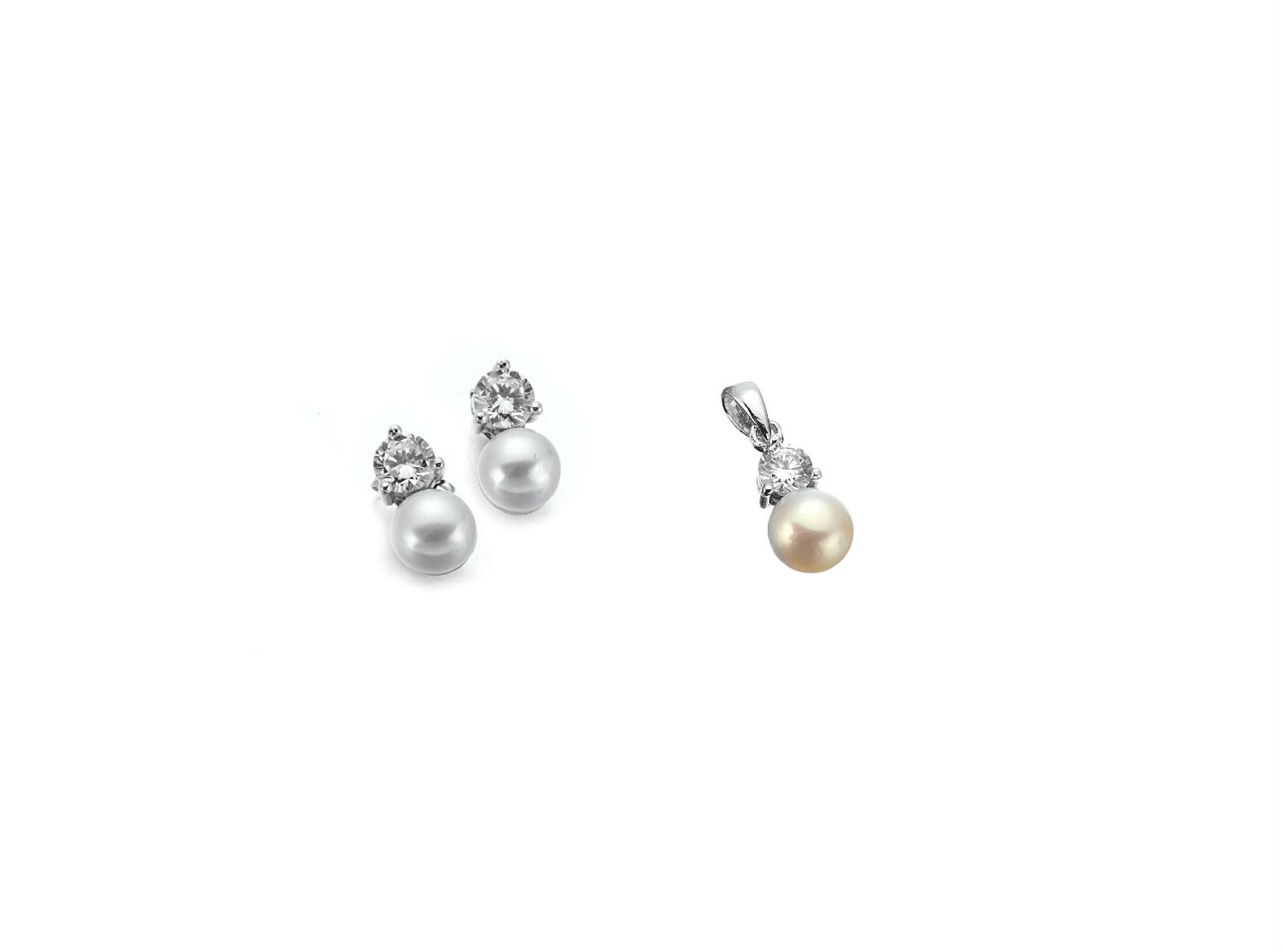 As shown is a jewelry set comes with a pendant and a pair of earrings in the same design. Each item in the set features an eye-catching fresh water pearl with white cubic zirconia. This jewelry set can be worn together or individually to mix with different clothing and present different style.