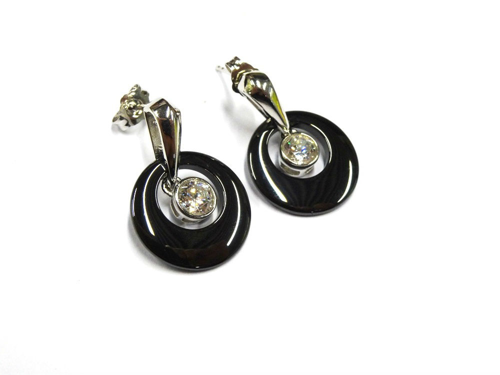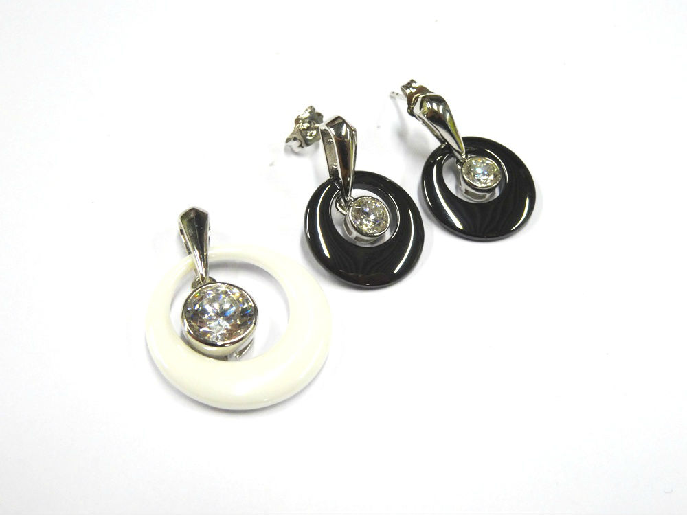 As shown is a ceramic jewelry set comes with a pair of earrings and a pendant in the same design. Each item in the set features an eye-catching ceramic. It shows elegant and luxurious. This jewelry set can be worn together or individually to mix with different clothing and present different style.