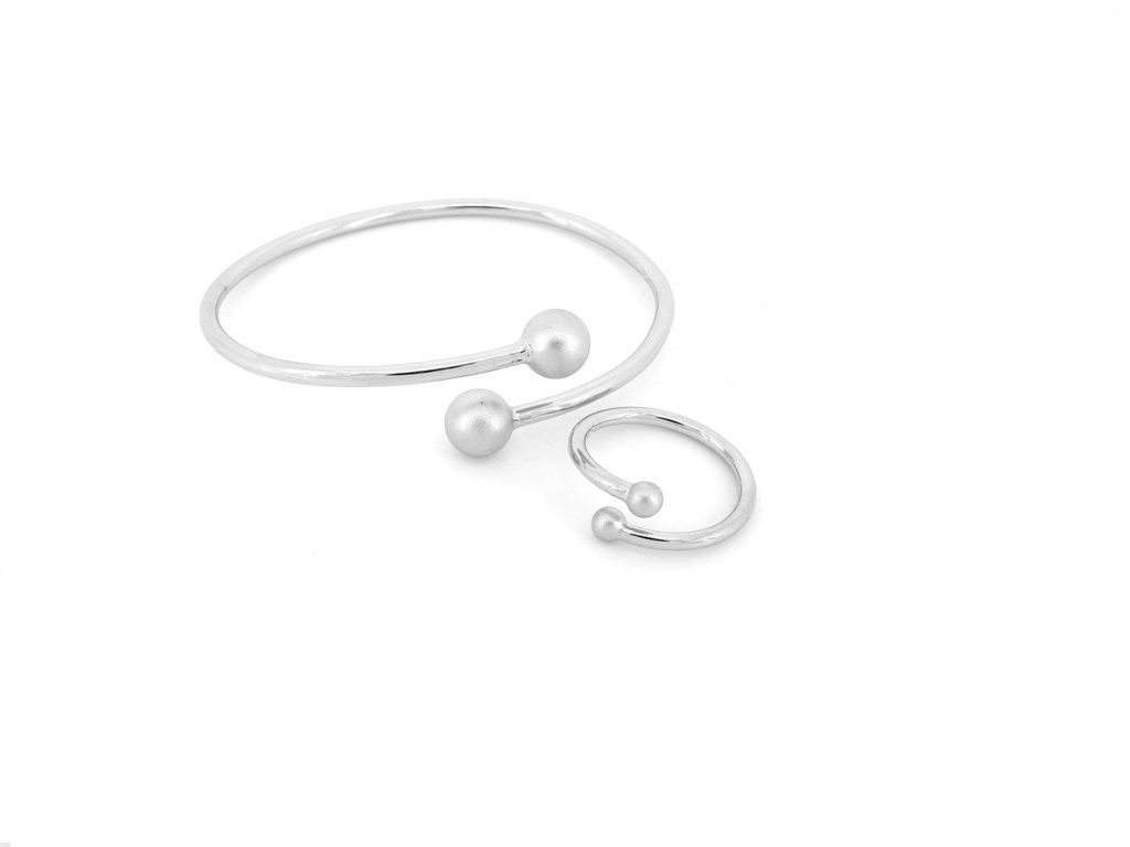 As shown is a jewelry set comes with a ring and a bangle in the same design. It is a young and cute design and it enables to wear in a set or separately. It is a nice choice of gift for young ladies. The design shows young and energetic. This jewelry set can be worn together or individually to mix with different clothing and present different style.