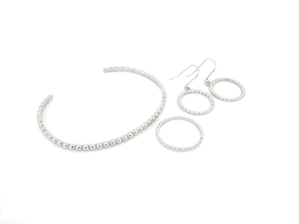 As shown is a jewelry set comes with a ring, a pair of earrings and a bangle in the same design. It is a young and cute design and it enables to wear in a set or separately. It is a nice choice of gift for young ladies. The design shows young and energetic. This jewelry set can be worn together or individually to mix with different clothing and present different style.