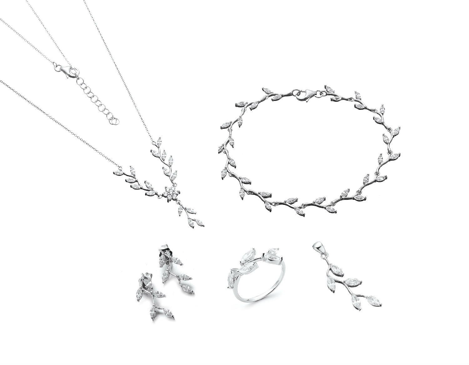 • 925 silver jewelry set comes with bracelet, a pair of earrings, necklace, pendant and ring