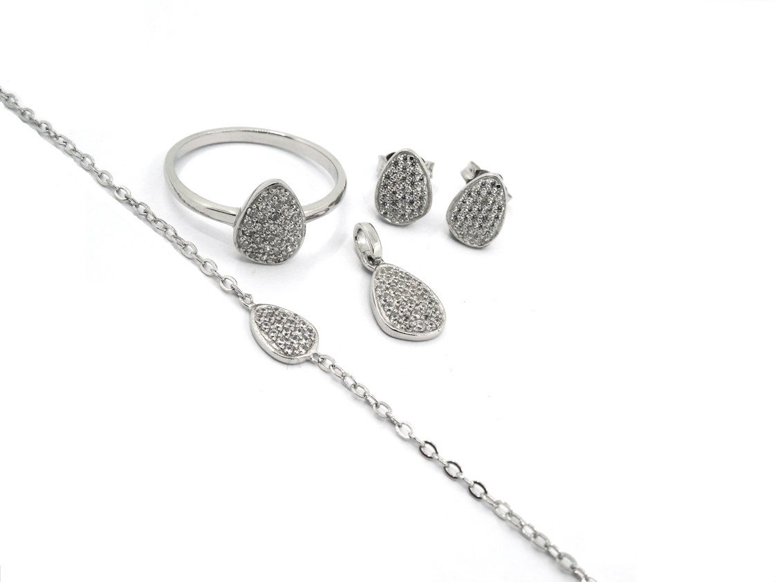 • 925 silver jewelry set comes with ring, bracelet, a pair of earrings and pendant. Stones and plating color can be changed.