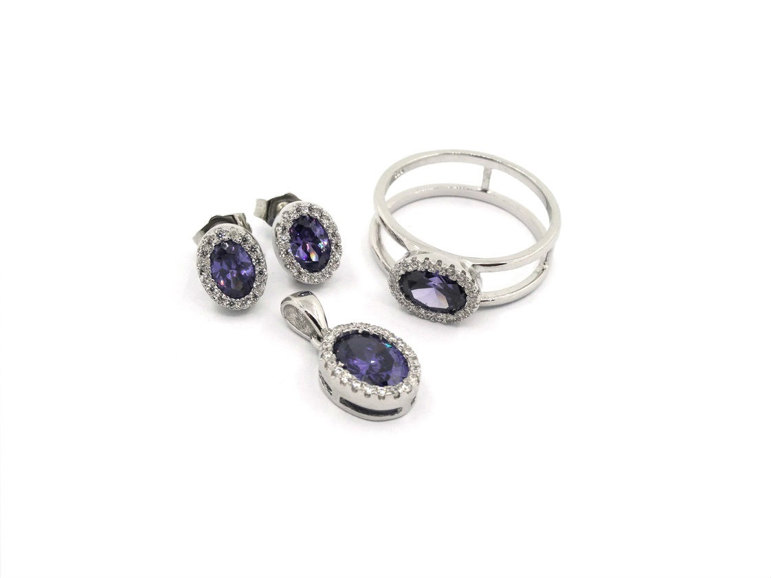 • 925 silver jewelry set comes with ring, a pair of earrings and pendant. Stones and plating color can be changed.