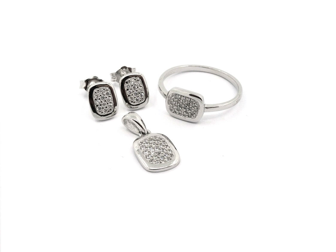 • 925 silver jewelry set comes with ring, a pair of earrings and pendant. Stones and plating color can be changed.