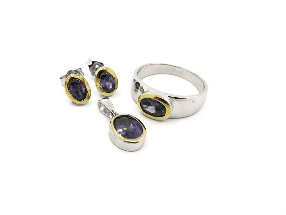 • 925 silver jewelry set comes with ring, a pair of earrings and pendant. Stones and plating color can be changed.