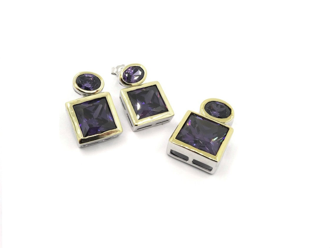 • 925 silver jewelry set comes with a pair of earrings and pendant. Stones and plating color can be changed.