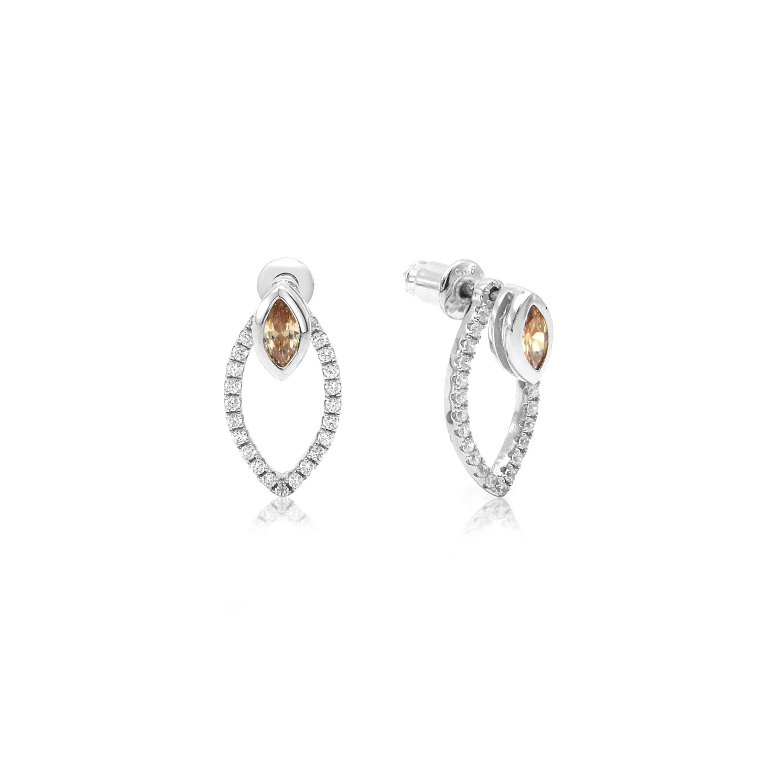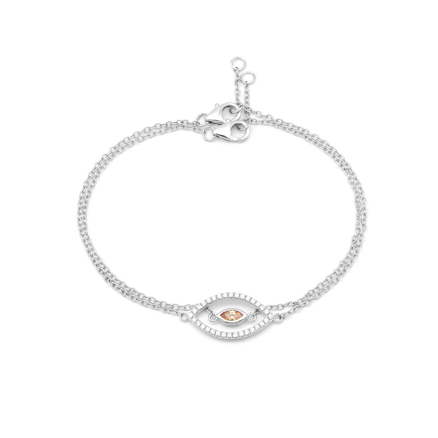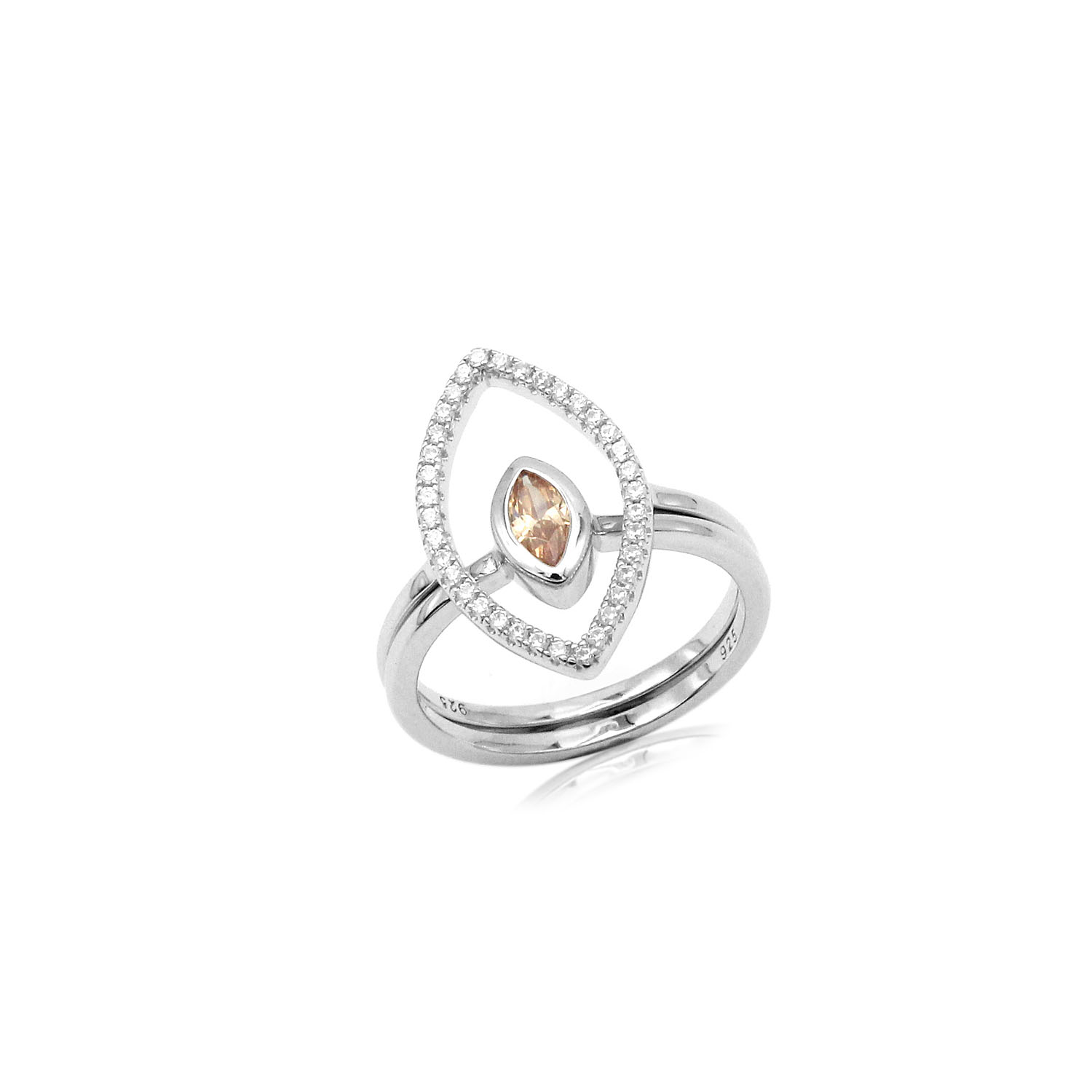 925 silver jewelry set - ring, earrings, bracelet and necklace in rhodium plating set with clear & champagne CZ