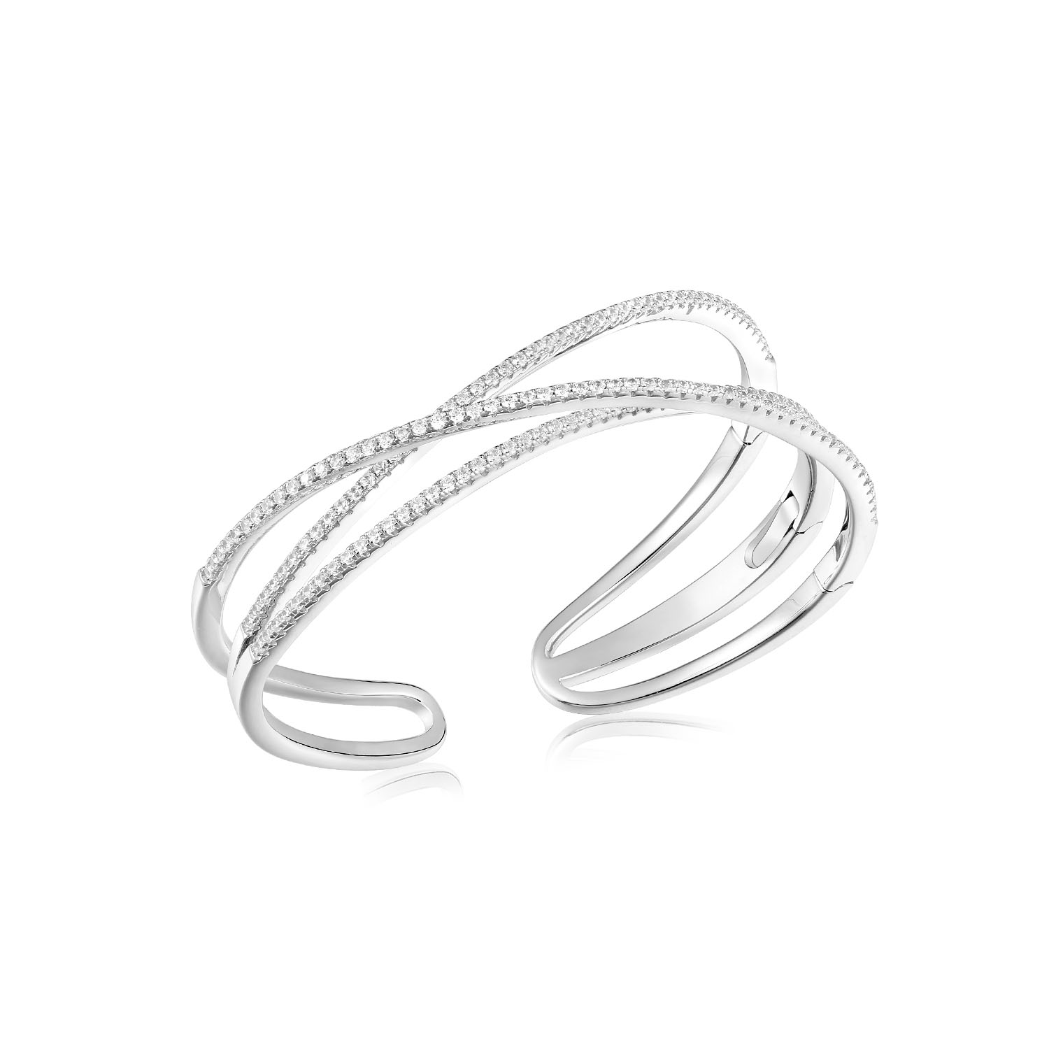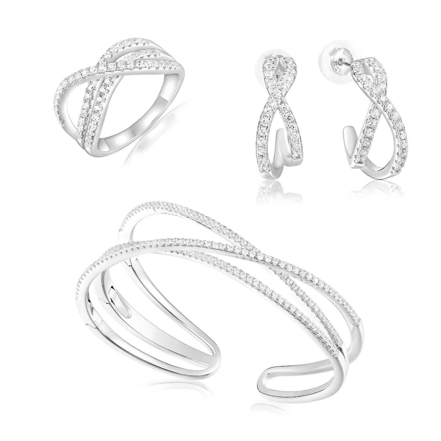 925 silver jewelry set - ring, earrings and bangle in rhodium plating set with clear CZ