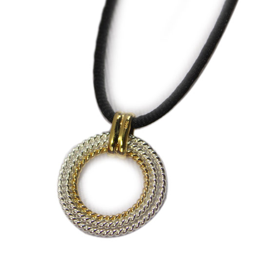 This 925 sterling silver necklace is designed with a loop-shaped pendant of alluring shine. This dazzling necklace is connected with a black strap for an eye-catching style. This fancy accessory adds a touch of sophistication to your everyday look.