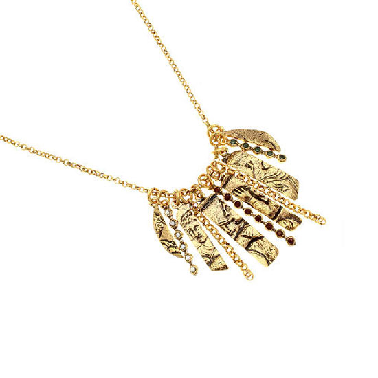 This charming necklace is made with rubies and semiprecious stones by hand. It features a sophisticated design with assorted unique embellishments. Add glamor and charm to your look with this necklace.