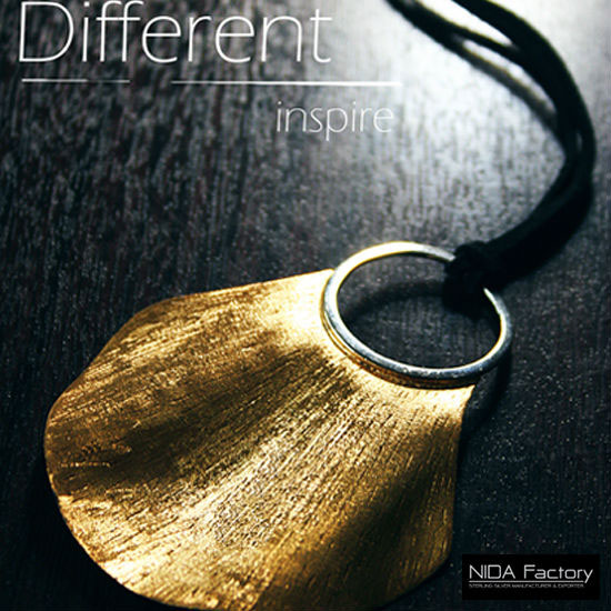 This is a 925 silver necklace with 18K gold and rhodium plating. The fan-shaped pendant comes on a black leather cord. It immediately completes your everyday casual look.